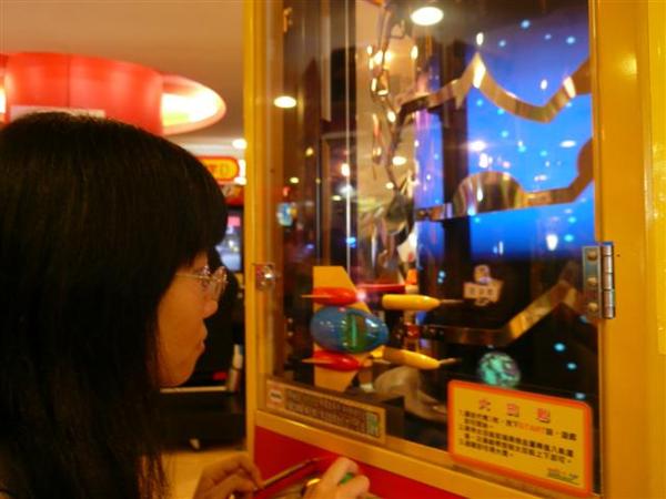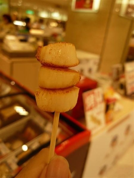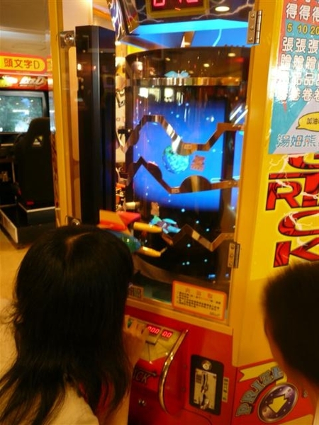 後來我們跑去逛百貨公司逛,玩湯姆熊XD這次最奇妙的兩個,一個是乒圖機,有夠難...時間太短了= =另一個是這個,電流急急棒XD恩,比想像的難- -"我原本還很小看它的說XD撞到了還會發出閃光呢- -"有個小弟也站在旁邊看XD後來去地下美食街看到有人再賣干貝耶!相當好吃!高達92分!不過有點貴orz這樣子一串30,兩串50= =